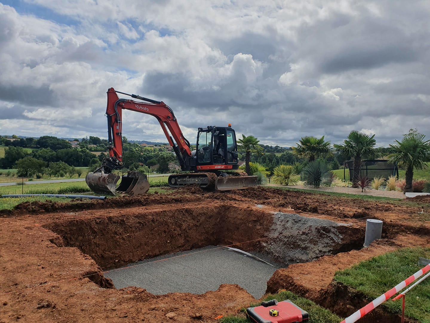 – Le terrassement de votre piscine pour une coque polyester (avec lit de pose) ou pour une piscine maçonnée